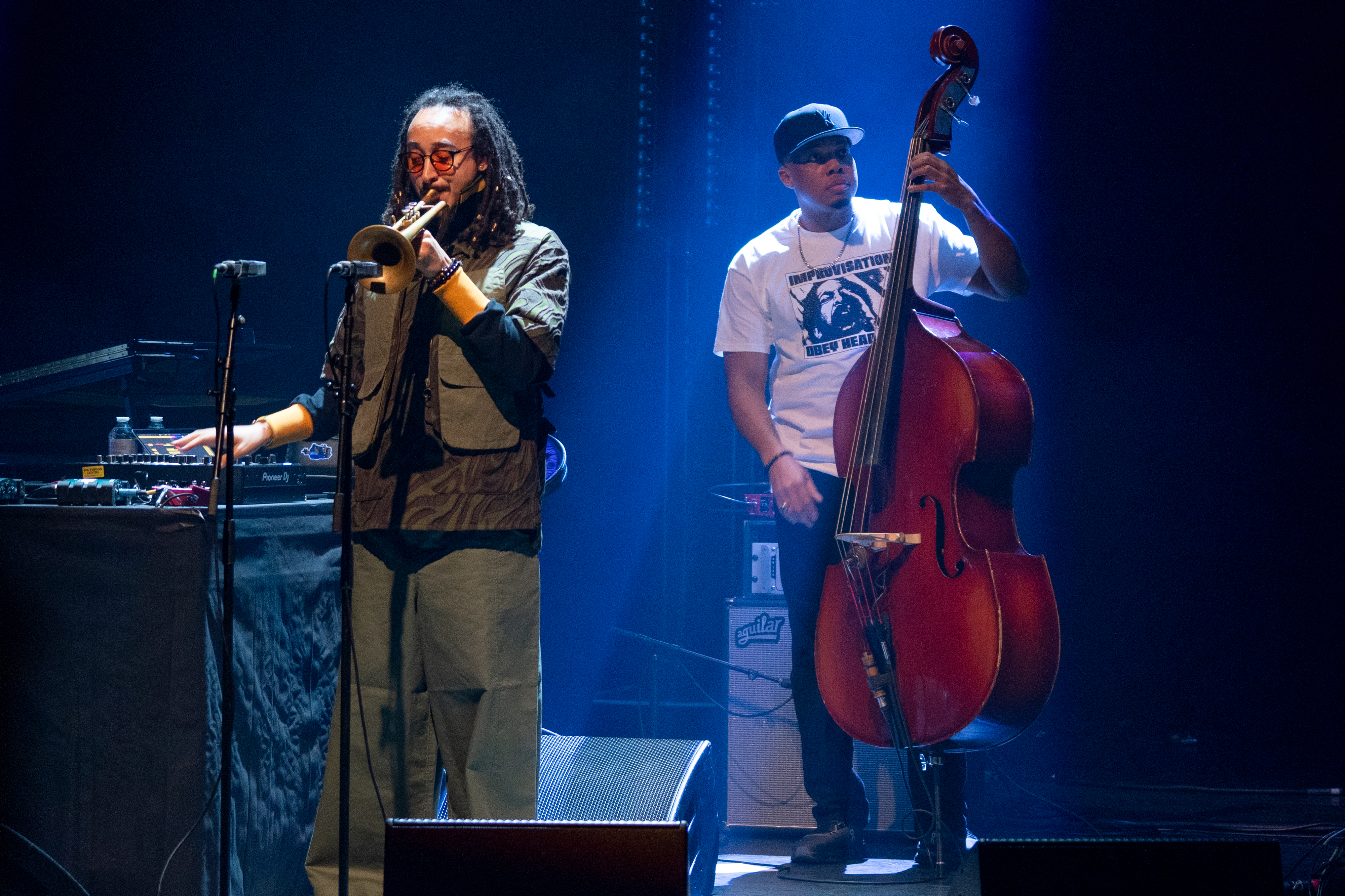 So, those hoping for Kind of Blue played in its entirety were destined to be disappointed, but we did get some exhilarating deep cuts. Very deep, one of them being Yaphet from the underrated Big Fun album from 1974, a pulsing track which could have acted as a blueprint for the whole gig. The band were on top form as it essayed the changes in tempo, atmosphere and harmony while Croker manipulated the sound in real time. Eric Wheeler was a powerhouse on bass, young drummer Koleby Royston subtle and far from overwhelmed by the demands of the ever shifting soundscape and Tyler Bullock was on keys. Although the latter also played synths, he also gave us some welcome, energetic passages on acoustic piano that offered us a definite human touch amid the electronic processing.
